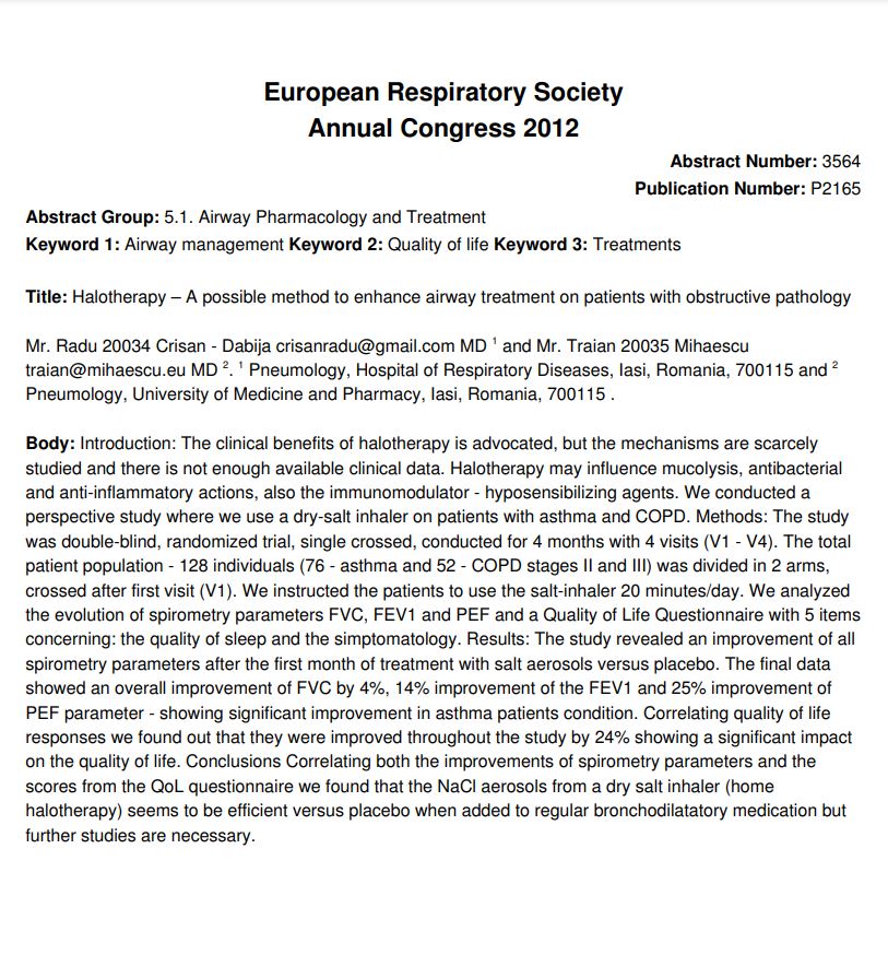 Salin Plus wurde von dem Medizinchemie-Ingenieur Dr. Constatin Pascu erfunden, der eine Besserung seiner Bronchitis feststellte, als er als Hobby Salzkristalle züchtete.