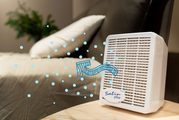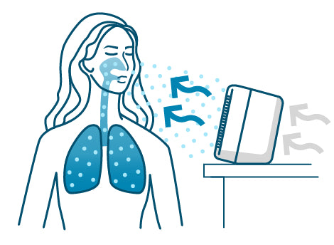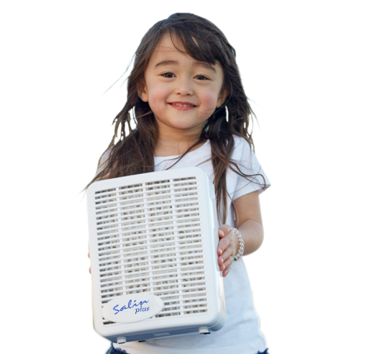 Ein Filter entfernt 98 % der Schadstoffe aus der Luft, die anschließend durch die Salzkartusche geleitet wird. Eine winzige Dosis mikroskopisch kleiner Salzkristalle (< 5 Mikrometer) löst sich von der Kartusche und schwebt in den Raum.