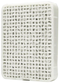 The Haloplus device should not be stored or used in a damp or high humidity environment, if the filter is exposed to moisture, it will damage the salt crystals and most likely the filter will need to be replaced. To overcome this issue, we recommend the use of a dehumidifier to bring the humidity levels down to the ideal level of 50% relative humidity. Also avoid areas with oily aerosols such as the kitchen.